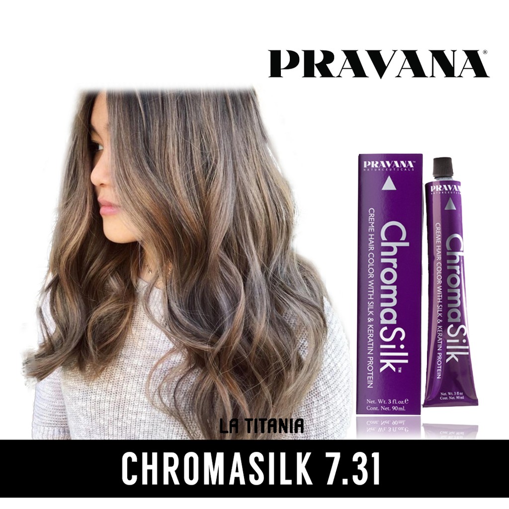 PRAVANA CHROMASILK 7 31 GOLDEN ASH BLONDE Cat Rambut Sumber : shopee.co.id